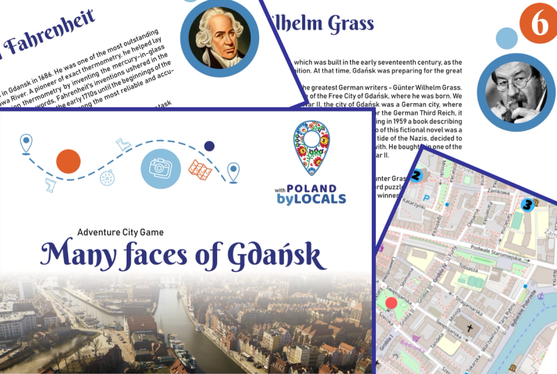 The Gdańsk Scavenger Hunt "Many Faces of Gdańsk" is an adventure for all visitors to the city. Spend two hours getting to know the most interesting places in the heart of Gdańsk. Our city game combines all the best: competition between teams, searching for places off the beaten track and learning about the centuries-old history of the city on the Motława River. Our scavenger game allows you to discover the Main and Old Town of Gdańsk in an extraordinary way. Famous characters related to you will be your guides during your adventure. However, to get to know their secrets and the history they created, you first need to locate them. Each team will receive a map that will lead you through the winding streets of the historic heart of Gdańsk. Have you heard of characters like Gunter Grass or Artur Shopenhauer? Do you know their secrets? Did you know that Farenheit was born in Gdańsk, and Heweliusz was also a brewer? These and other secrets of Famous Gdańsk citizens are waiting for you. The team that collects the most points in the shortest possible time wins. Learn the history of Gdańsk in an interesting way, let yourself be carried away by a local adventure. The scavenger hunt "Many Faces fo Gdańsk" is an ideal solution for spending time in Gdańsk for families, friends or company events.